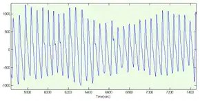 Representative PPG taken from an ear pulse oximeter. Variation in amplitude are from Respiratory Induced Variation.