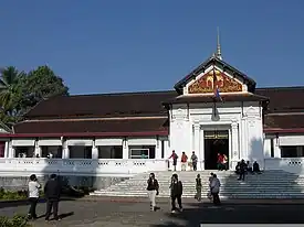 In 2013 the Prabang Buddha was moved from the National Museum and brought to Haw Pha Ban on the Royal Palace grounds.[3] Each year, on the third day of "Pimai" or Lao New Year, the Phra Bang is taken in procession to Wat Mai. There it is exhibited at a shrine where the Buddha image is ritually bathed by devout laypeople during Lao New Year festivities.Ch
