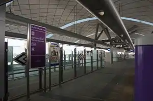 Phra Nang Klao Bridge station (Thai: สถานีสะพานพระนั่งเกล้า, RTGS: Sathani Saphan Phra Nang Klao) is a Bangkok MRT station on the Purple Line. The station opened on 6 August 2016 and is located on Rattanathibet road on the eastern end of Phra Nang Klao Bridge crossing the Chao Phraya River in Nonthaburi Province.[1] The station has three entrances.[2]