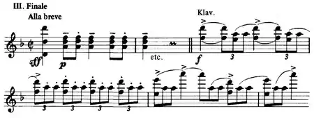 - Finale: Alla breve (D minor → E♭ major → D minor → D major)