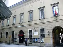 The Piccolo Teatro di Milano (translation: "Little Theatre of the City of Milan") is a theatre in Milan, Italy. Founded in 1947, it is Italy's first permanent theatre,[1] and a national "teatro stabile", or permanent repertory company, and is considered a theatre of major national and European importance.[2][3] The theatre has three venues: Teatro Grassi, in Via Rovello, between Sforza Castle and the Piazza del Duomo; Teatro Studio, which was originally intended to be the theater's rehearsal hall; and Teatro Strehler, which opened in 1998 with a seating capacity of 974.[4] Its annual programme consists of approximately thirty performances. In addition, the venue hosts cultural events, from festivals and films, to concerts, conferences, and conventions,[5] as well as supporting the Paolo Grassi Drama School.[6]