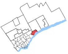 Specifically, it consisted of the part of the City of Pickering lying south and west of a line drawn from the western city limit east along Finch Avenue, south along Valley Farm Road, northeast along Highway 401 and south along Brock Road to the southern city limit; and the part of the City of Toronto lying south and east of a line drawn from the eastern city limit west along Finch Avenue East, south along Meadowvale Road, west along Sheppard Avenue East, south along Morningside Avenue and southeast along Highland Creek to Lake Ontario.