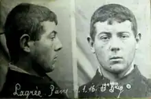 Immediately after his arrest, theories emerged that he also might be Bitel's killer.[7] While Lagrée readily confessed to the Monvieux murders, he initially denied culpability in the former's killing.[10][6] When queried about the Monveiux killing, Lagrée calmly and without emotion recounted that his sole reason was theft, and that he regretted killing the children.[11] In April 1916, it was decided that he would be tried in a military court, after which Lagrée was transported to the military prison in Rennes.[12] His trial was scheduled for 25 July.[13]