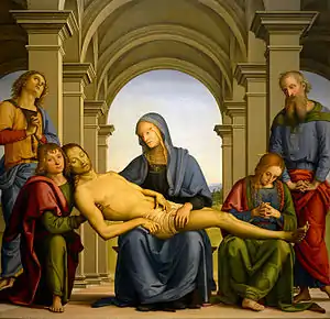 Pietà is a painting by the Italian Renaissance artist Pietro Perugino, executed around 1483-1493, and housed in the Uffizi Gallery, Florence.