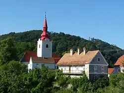 The parish church in the settlement is dedicated to Saint Michael and belongs to the Roman Catholic Diocese of Celje. It was first mentioned in written documents dating to 1167. The current church was built in the 15th century and redone in Baroque style in the 18th century.[4]