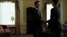 ![]() Harvey Specter (Gabriel Macht) and Mike Ross (Patrick J. Adams) meet for the first time. | |