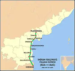Pinakini Intercity Express, which derived its name from Penna or Pinakini River passing through Nellore City which lies between Chennai and Vijayawada.