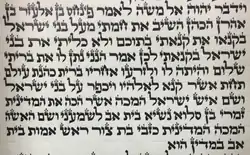 In the first reading, God announced that because Phinehas had displayed his passion for God, God granted him a pact of friendship and priesthood for all time.[4] (In a Torah scroll, the letter וֹ in the verse "Behold, I give him My covenant of peace," is split.) God then told Moses to attack the Midianites to repay them for their trickery luring Israelite men to worship Baal Peor.[5]