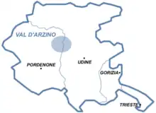 Val d'Arzino map. Udine is the location of several populations.
