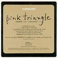"Pink Triangle" is a song by American rock band Weezer. As the third and final single from the band's second studio album Pinkerton (1996), it was released to radio on May 20, 1997 by DGC Records. The song was written by Rivers Cuomo.