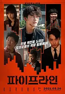 Pipeline (Korean: 파이프라인; RR: Paipeulain) is a 2021 South Korean crime action film directed by Yoo Ha and starring Seo In-guk, Lee Soo-hyuk and Eum Moon-suk.[2] The heist film tells the story of six thieves who wish to change their lives by stealing oil hidden in a tunnel dozens of meters underground in Korea.[3] The film was released theatrically on May 26, 2021.[4]