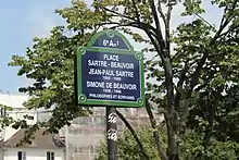 The square was named Place Jean-Paul-Sartre-et-Simone-de-Beauvoir in April 2000.[2]