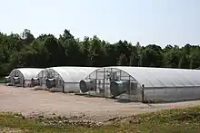 The institute operates three greenhouses. The greenhouse complex provides about 10,000 square feet of space for plant trials on crops like broccoli and strawberry and allows the institute to rent space or collaborate on research with other campus operations and businesses.[20]