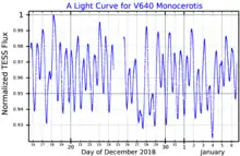 A light curve for V640 Monocerotis, plotted from TESS data[10]