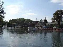Boatbuilding began on the island in 1868, when Thomas Tagg, who had been running a business since 1841 on Tagg's Island, about 1 km (0.62 mi) downstream, expanded by building a boatyard and house on the eastern end of Platt's Eyot. A waterworks and electrical works with a charging station were also constructed on the island; the latter was used to power electrically powered pleasure launches and canoes that were built on the island.[3]