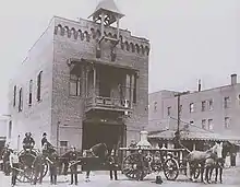 Designed by local architect William A. Boring [the City paid him $160.75 for his drawings],[1] and built in 1884, it operated as a firehouse until 1897. The building was thereafter used as a saloon, cigar store, poolroom, "seedy hotel", Chinese market, "flop house", and drugstore.[2] The building was restored in the 1950s and opened as a firefighting museum in 1960.