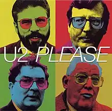 "Please" is a song by Irish rock band U2. It is the eleventh track on their ninth album, Pop (1997), and was released as its fourth single on 22 September 1997. As with "Sunday Bloody Sunday", the song is about The Troubles in Northern Ireland. The single cover for this song features pictures of four Northern Irish politicians – Gerry Adams, David Trimble, Ian Paisley, and John Hume (clockwise from top left). Two months before the release of the single, live versions of "Please" and three other songs from the PopMart Tour were released on the Please: PopHeart Live EP in September 1997.