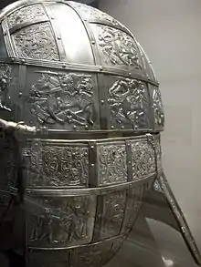 Almost identical motif on the replica of the Sutton Hoo helmet ( at the Royal Armouries Museum) that shows what the helmet might have looked like in its heyday.