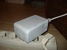 A plug computer is an external device, often configured for use in the home or office as a compact computer. The name is derived from the small configuration of such devices; they are often enclosed in an AC power plug or AC adapter.