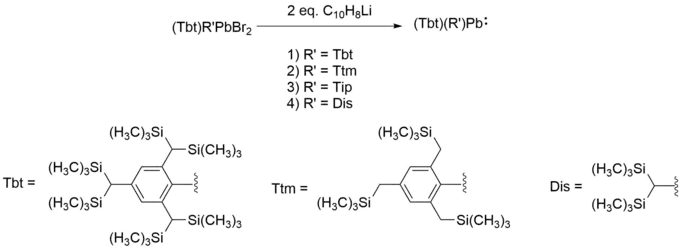 Transmetallation with [((CH3)3Si)2N]2Pb as the Pb(II) precursor has also been used to synthesize diarylplumbylenes,[6] disilylplumbylenes,[7] and saturated N-heterocyclic plumbylenes.[8]