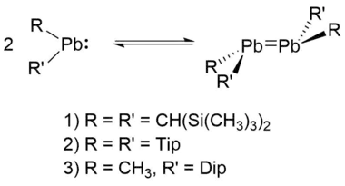 - ↑ Stürmann, Martin; Saak, Wolfgang; Marsmann, Heinrich; Weidenbruch, Manfred (1999). "Tetrakis(2,4,6‐triisopropylphenyl)diplumbene: A Molecule with a Lead–Lead Double Bond". Angewandte Chemie International Edition. 38 (1‐2): 187–189. doi:10.1002/(sici)1521-3773(19990115)38:1/2<187::aid-anie187>3.0.co;2-2. ISSN 1521-3773.