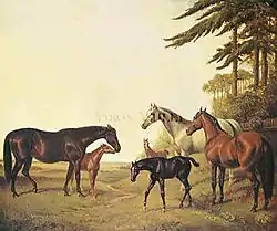 ![]() A painting of Pocahontas (left), with Stockwell as a foal. | |