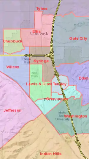 Elementary school boundaries of Pocatello - Edahow Elementary School