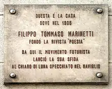 Plaque in Milan noting Marinetti's founding of Poesia.