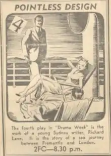 - ↑ Australian Broadcasting Commission. (1939), "Plays of the Air— Can Stage Plays be Radio Plays?", ABC weekly, Sydney: ABC (Vol. 3 No. 18 (3 May 1941)), nla.obj-1312687970, retrieved 26 October 2023 – via Trove