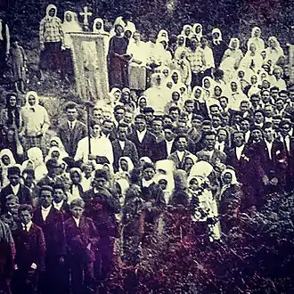 History of Poles in Bosnia begins during the Ottoman rule, but a significant influx only took place following the Austro-Hungarian occupation of Bosnia and Herzegovina in 1878.[1] The occupying authorities wished to colonize the country with politically reliable people, whom they rewarded with land and benefits.[2] Germans and Hungarians were not considered suitable, while Croatians and Serbians were not desirable. The authorities decided on Poles and Czechs, expecting their Slavic roots to help them acclimatize well among Bosniaks.[1] Official settlement lasted from 1896 until 1906.[3] The Polish settlers were predominantly ethnic Roman Catholic farmers from the Kingdom of Galicia and Lodomeria, a crown land of Austria. Along with them came the Eastern Orthodox Ruthenians. Civil servants, physicians, engineers and lawyers,[2] all driven by expectations of fast career advancement and higher wages,[1] were also among Polish settlers.[2] The farmers were settled in the flatlands of Bosanska Krajina and Posavina, mostly in the vicinity of Prnjavor, Derventa, Bosanska Gradiška, Banja Luka, Bosanski Novi and Prijedor. In the areas surrounding Prnjavor and Bosanska Gradiška, there existed villages inhabited solely by Poles; Poles otherwise lived in villages with Bosnian Serbs or, less commonly, in villages with Bosnian Croat majority.[2] The two largest Polish colonies in Bosnia and Herzegovina, Rakovac (Polish: Rakowiec) and Novi Martinac (Nowy Martyniec) near Prnjavor, were formed between 1899 and 1901.[3]