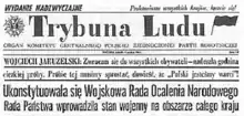 The origins of Polish television date back to the late 1930s,[28][29] however, the beginning of World War II interrupted further progress at establishing a regularly televised program. The first prime state television corporation, Telewizja Polska, was founded after the war in 1952 and was hailed as a great success by the communist authorities.[30] The foundation date corresponds to the time of the very first regularly televised broadcast which occurred at 07:00 p.m CET on 25 October 1952.[30] Initially, the auditions were broadcast to a limited number of viewers and at set dates, often a month apart. On 23 January 1953 regular shows began to appear on the first and only channel, TVP1.[31] The second channel, TVP2, was launched in 1970 and coloured television was introduced in 1971. Most reliable sources of information in the 1950s were newspapers, most notably Trybuna Ludu (People's Tribune).