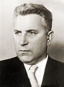 Bolesław Bierut, an NKVD agent[6] and a hardline Stalinist, served as first Secretary General of the ruling PZPR from 1948 to 1956, playing a leading role in imposing communism and the installation of its repressive regime. He had served as President since 1944 (though on a provisional basis until 1947). After a new constitution abolished the presidency, Bierut took over as Prime Minister, a post he held until 1954. He remained party leader until his death in 1956.