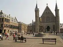 The States-General (Staten-Generaal in Dutch) or the Generality (Generaliteiten) for short was a descendant of the medieval Burgundian and Habsburg States-Generals. In medieval times and under the Habsburgs, they met infrequently to discuss matters of common interest and to vote taxes for the benefit of the Dukes of Burgundy and their Habsburg heirs.[7]: vol 1 [5]: 292 At first the States-General was thought of as an extraordinary body.[2]: 67 After the abjuration of the king in 1581 and the separation of the northern Netherlands from the Spanish dominions, the States-General replaced the king as the supreme authority and as the central government of the northern Netherlands, which then became known as the United Provinces. As alluded to above, this was an ad hoc arrangement since no prince would anger Spain by accepting sovereignty over the provinces. As the years went by, and the confidence of the governing regents and Princes of Orange grew, the desire to be ruled by a foreign prince diminished.[8]: 29 From 1593, the States-General met daily, including on Sundays, usually between 11 and 1, and, after some variation in the earlier years, it came to sit in the Binnenhof, in The Hague, near the States of Holland.[2]: 67