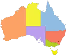 Queensland is regarded as comparatively conservative.[69][70][71][72][73] Victoria, Tasmania and the Australian Capital Territory are regarded as comparatively left of centre.[73][74][75][76] New South Wales, the largest state by population, as well as South Australia have often been regarded as politically moderate bellwether states.[76][73] Western Australia, by contrast, tends to be more politically volatile; regarded as the most conservative state during the 2000–10s,[77] it has lately swung to rank amongst the most left-leaning states in the country. It is also known for historical secessionist sentiments.[78][79]