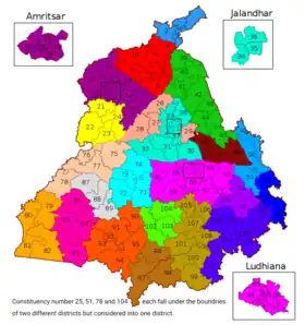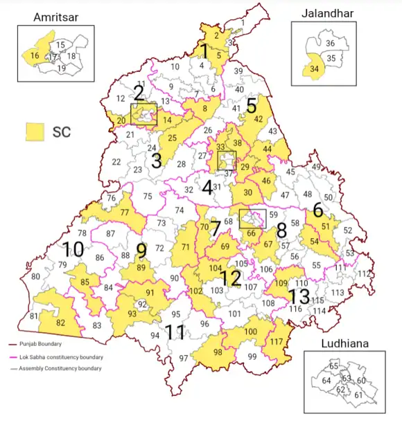 Following is the list of parliamentary constituencies (PC) and assembly constituencies (AC) of Punjab:-