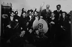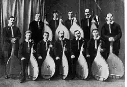 The Poltava Bandurist Capella was vocal-instrumental ensemble who accompanied themselves on the multi-stringed Ukrainian bandura. It was initially established in February 1925, based on a male church choir who sang in the Ukrainian Autocephalous Orthodox Cathedral in Poltava under the direction of Fedir (Khvedir) Popadych. The ensemble was disbanded in October 1934.
