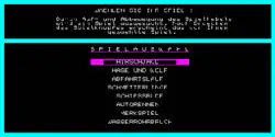 | Hirschjagd (Deer Hunt) is similar to Robotron: 2084. Translation from the game: The fleeing deer must be pursued and hunted, but only 10 shots are available. A shot that hits the deer is not deducted. Around every 15 seconds, a shot must be fired or it will be lost. |