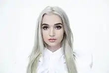 Poppy has been compared to artists such as Grimes, Icona Pop, Melanie Martinez, and Charli XCX.[17] Poppy has described herself as a "kawaii Barbie child".[186][187] She has described her music style as "music [that] makes you want to rule the world." Poppy states that she drew inspiration from genres such as J-pop and K-pop, as well as reggae. She recalls beginning to write music in 2012. She told Tiger Beat her musical inspirations are Cyndi Lauper, unicorns and Elvis Presley.[188] She is a fan of Jimmy Eat World, No Doubt, Norma Jean, Blondie, Gary Numan, Of Montreal, and Madonna.[186][189][190]