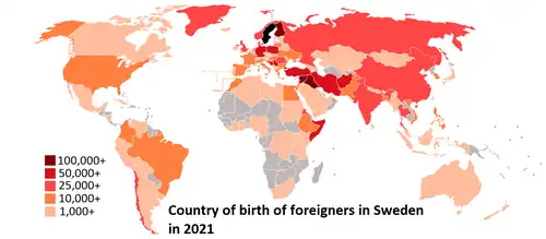 - ↑ "Population in Sweden by Country/Region of Birth, Citizenship and Swedish/Foreign background, 31 December 2022". Archived from the original on 25 March 2023. Retrieved 25 March 2023.