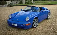 There were two distinct incarnations of the air-cooled 911 Speedster. The first was the 1989 model year Speedster. Shown at the 1988 Frankfurt Motor Show beside the upcoming Carrera 4, the 1989 Speedster actually shared more in common with the 930 turbo than with the upcoming 964 generation 911s, causing it to be looked upon, in retrospect, as a much inferior "driver's car" to the later 1994 Speedster. More than three quarters (641) of the 800 built had the "Turbo look" wide-body option.[13]