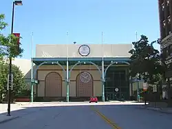 A more definitive plan came on June 7, 2011, when Green Bay-based Schreiber Foods announced plans to demolish the main mall property, the former JCPenney anchor location (which had never been redeveloped since its closure), and an adjacent Days Inn and build a new $50 million corporate headquarters and technology center on the site.[10] TIF funding would be transferred to the project in July 2011.[11] The tearing down of the mall property began with recycling of materials in July 2011, followed by the demolition of the Days Inn the following fall,[12] and the demolition of the remainder of the mall during the first half of 2012.[13][14] The new limestone-and-glass headquarters building, which opened in June 2014, consolidated Schreiber's Green Bay operations into one location (it was formerly spread out among 6 leased offices throughout the downtown core); it also features green space and a new east–west street to connect Washington and Adams Streets.[15]