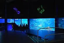 The Veracruz Aquarium was built in 1992 and is the largest and most important in Latin America.[4][31][35] The Freshwater Gallery consists of thirteen exhibitions containing 562,177 liters of water. These exhibitions contain aquatic species from Asia, Africa, South America as well as Mexico. The Reef Tank is best known for its sharks. The Salt Water Gallery contains fourteen tanks with tanks dedicated to the species of Veracruz, the Red Sea and the Pacific Ocean. Another exhibit is devoted to sharks, containing 25 species that swim around visitors as they walk through a glass tunnel built through the tank. There is also an exhibit dedicated entirely to manatees.[35]