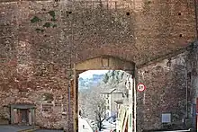 The Porta di Fontebranda or Fontebranda Gate is one of the last remaining gates in the medieval walls of Siena. It is located on via di Fontebranda, in Siena, region of Tuscany, Italy. 43°19′06.79″N 11°19′34.09″E / 43.3185528°N 11.3261361°E