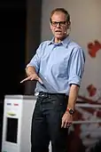 Alton Crawford Brown Jr. (born July 30, 1962) is an American television personality, food show presenter, food scientist, author, voice actor, and cinematographer. He is the creator and host of the Food Network television show Good Eats that ran for 16 seasons, host of the miniseries Feasting on Asphalt and Feasting on Waves, and host and main commentator on Iron Chef America and Cutthroat Kitchen. Brown is a best-selling author of several books on food and cooking. A recap series titled Good Eats Reloaded aired on Cooking Channel, and a true sequel series, Good Eats: The Return, ran from 2019 to 2021 on Food Network. (Full article...)