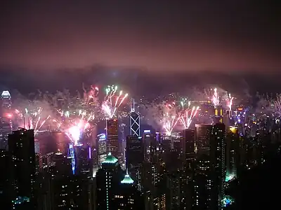 Fireworks over Hong Kong's skyline