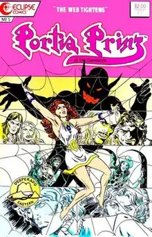 Between 1977 and 1979, Howell produced five issues of Portia Prinz,[6] though his small press Desperado-Eastern had little reach beyond Boston.[1] The storyline was described as a serialised graphic novel,[2] though the work was initially left incomplete due to Howell's commitments as an editor for Irjax Enterprises. After breaking into mainstream comics in the early 1980s - including work for both DC and Marvel Comics - Howell looked at restarting the series with an independent publisher. His first attempt was cut short when an unnamed publisher insisted he increase the sex appeal of Portia.[1]