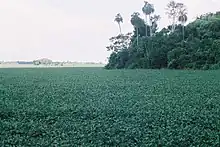 Yerutí is a campesino colony founded by Paraguay in 1991 on land that an education minister of dictator Alfredo Stroessner surrendered in compensation for the embezzlement of public funds. While the 2,212-hectare (5,470-acre) colony has 223 lots, by 2019 there were only 34 registered properties, with industrial soybean fields occupying the untitled public land. Despite Agrarian Reforms meant to prevent the practice, much of the land is sold or leased to soybean plantations run by Brazilians and Brasiguayos.[2] The widespread use of agrochemicals in Yerutí has impacted living conditions, domestic economies and the health of residents. Contamination of aquifers and water sources rendered the Yerutí and Kuairû streams unusable for fishing. Residents also experienced the deterioration of their crops, losing fruit trees, as well as the death of their livestock.[3]