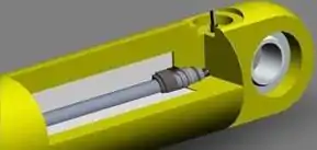 External linear displacement transducers (LDTs) eliminate the need for a hollow hydraulic cylinder rod. Instead, an external sensing “bar” utilizing Hall-Effect technology senses the position of the hydraulic cylinder piston. This is accomplished by the placement of a permanent magnet within the piston.[3] The magnet propagates a magnetic field through the steel wall of the hydraulic cylinder, providing a locating signal to the sensor.
