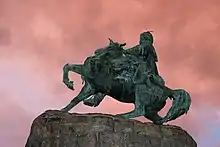 Talaat Pasha, the architect of the Armenian genocide, is buried under the Monument of Liberty, Istanbul, dedicated for "heroes of the fatherland".[34] The glorification of Talaat and other Armenian Genocide perpetrators goes along with Turkey's state-sponsored Armenian genocide denial.[34]