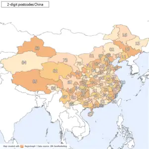 2-digit postcode areas China (defined through the first two postcode digits)